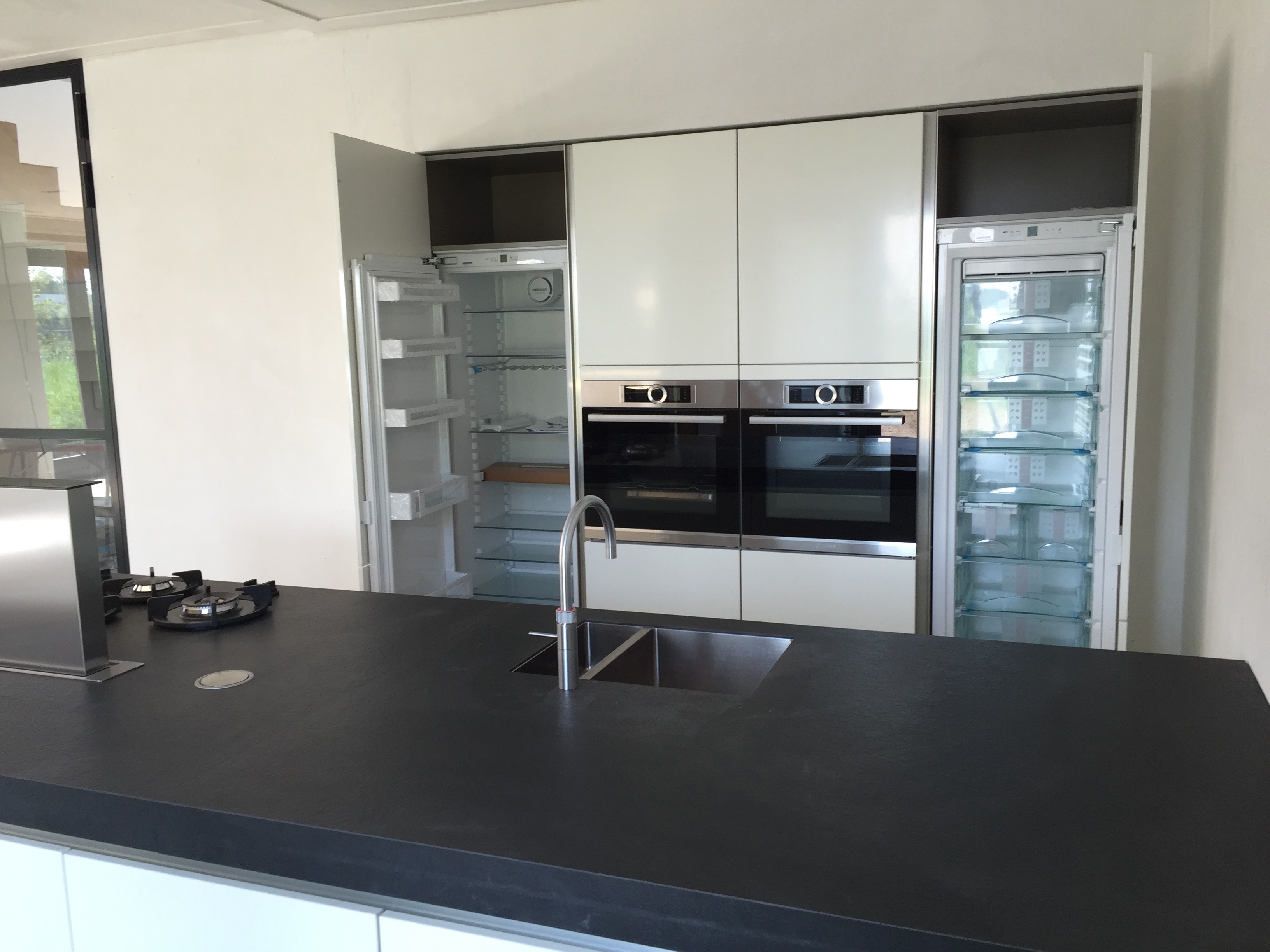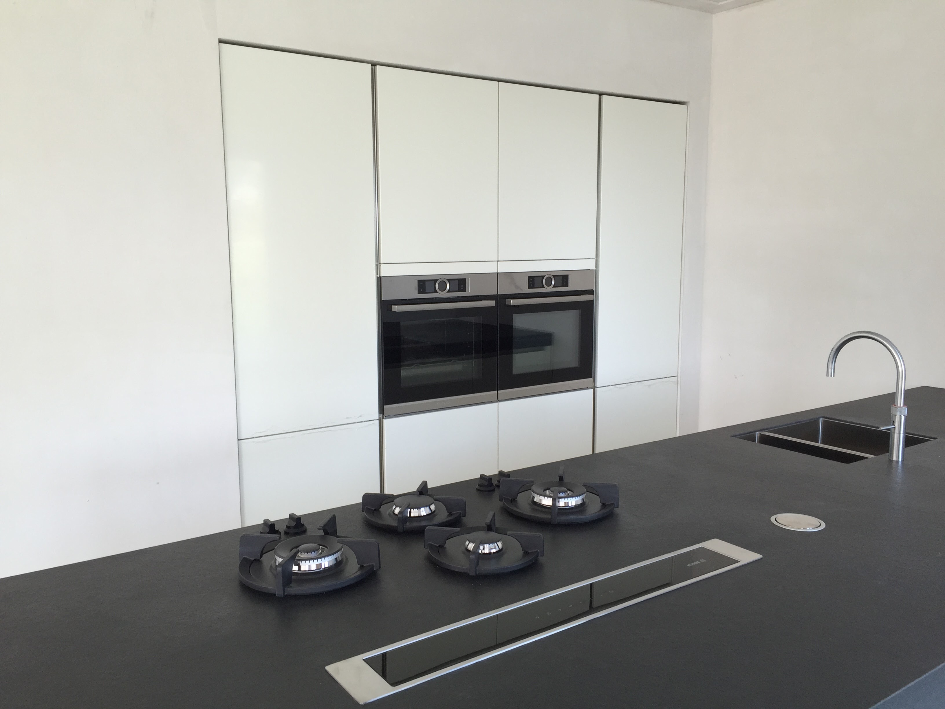 Weer een tevreden opdrachtgever. Deze mooie witte hoogglans keuken uitgerust in het eiland een pitt cooking en downdraft afzuigsysteem. Lade's…